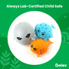 • These cute creatures made of soft and flexible plastic with textured and colorful surfaces for squishy, sensory fun in the tub.