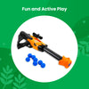Ready to have a blast? Our fantastic toy gun set comes with 1 Blast Poppers toy gun, 12 foam balls, and 3 small target stands, all in bright colors and child-friendly designs.