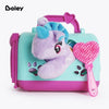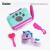 - WHAT’S INSIDE: This fun set includes a purple and light blue unicorn plushie, a cute light blue cage with a handle and two accessories: a pink toy brush and a pink toy comb.