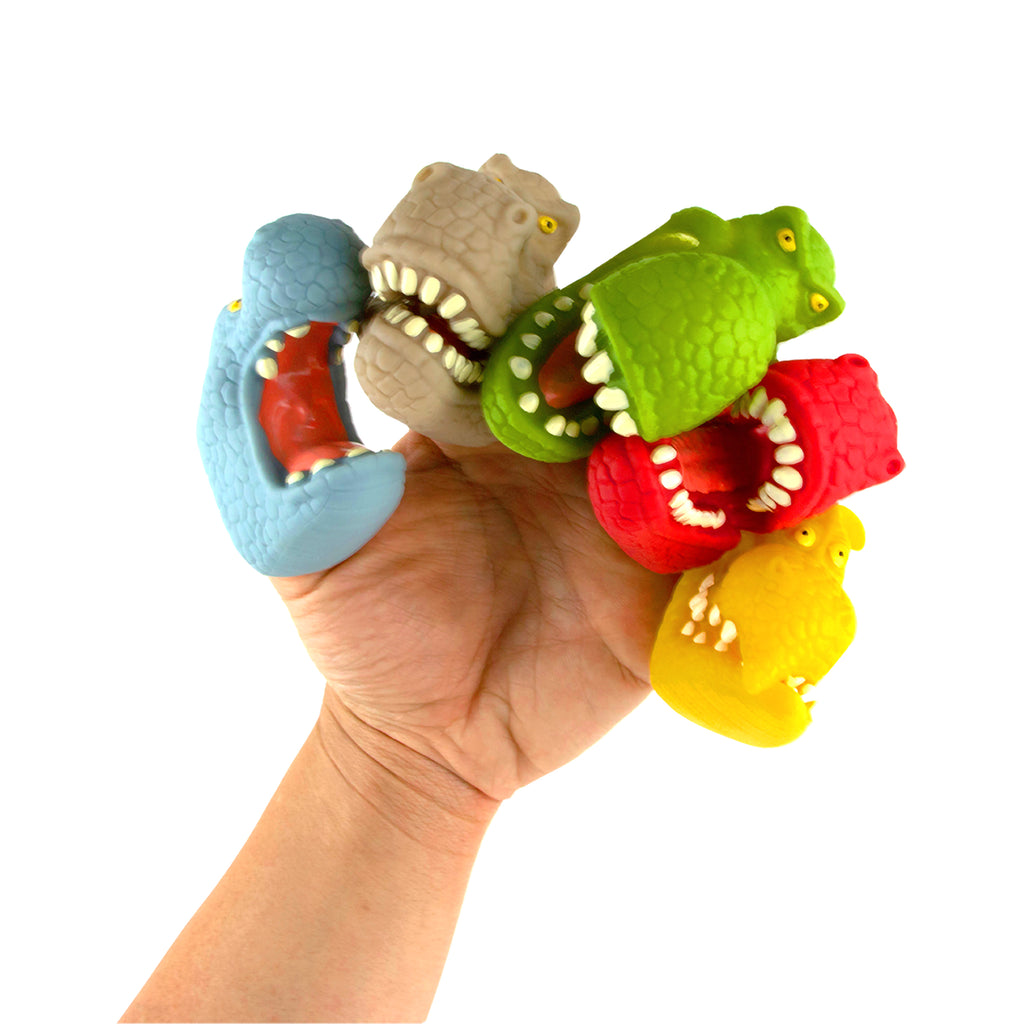 Each of the 12 dinosaur puppets included is brightly colored with adorably funny cartoon expressions. Made of soft flexible plastic so it's easy to clean.