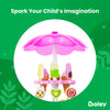 This playset is full of delights! Press the heart-shaped button to play a song with umbrella lights, then set up the two-tier cart every ice cream cone, popsicle, and lollipop fits neatly inside their dedicated spaces.