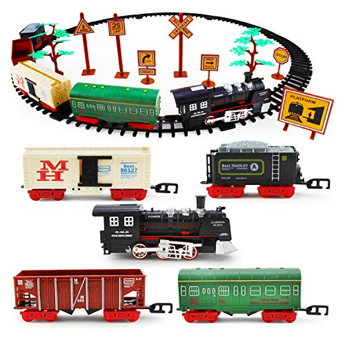 - CLASSIC HOBBY: Train enthusiasts young and old will love our vintage model train set! Set the scene with highly customizable train tracks, road signs and little trees, then hear the locomotive engine sounds for an immersive, pretend play experience.