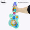 • Introduce a love of music to your child through hands-on sensory play! Our adorable kids electric guitar is full of light and sound features, including 5 musical keys, a whammy bar, volume control, and more.